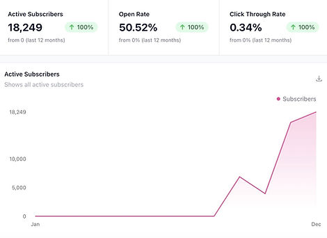 Our subscriber growth approach is built around paid social channels rather than lower-quality traffic sources, helping support stronger open rates, better engagement, and healthier long-term newsletter growth.